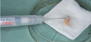 ※リグロスを口蓋から採取した結合組織に塗布している様子