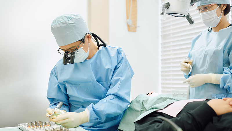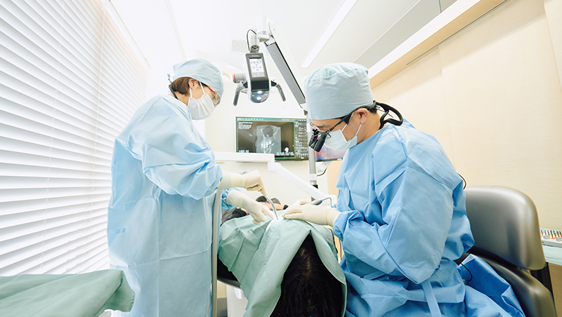 骨量が不足している方に対しては、骨造成を併用した治療を行うほか、抜歯と同時にインプラントを埋入する抜歯即時インプラント手術、歯肉を大きく切開せずに行うフラップレスインプラント手術など、症例に応じた高度な治療にも対応可能です。