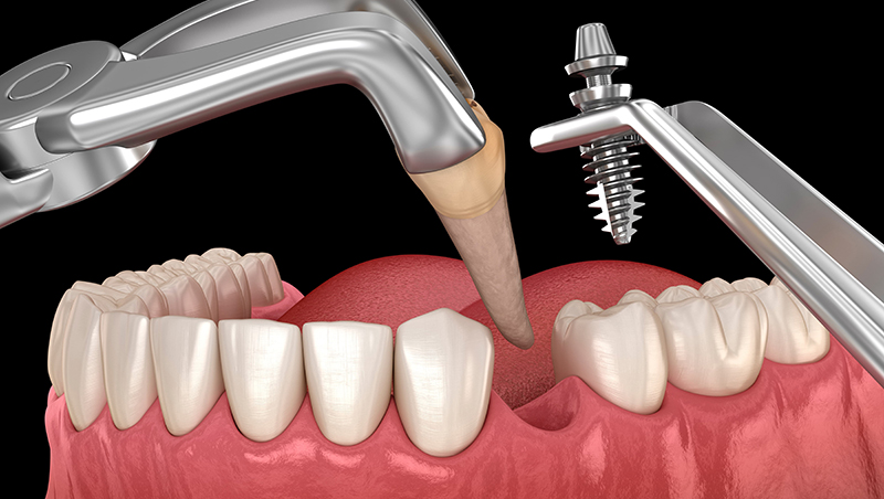 抜歯即時インプラント手術とは、抜歯を行ったその日に、同じ部位へインプラントを埋入する治療法です。通常は抜歯後に一定期間の治癒を待ってからインプラント治療を行いますが、条件が整えば治療回数や期間を短縮することが可能となります。