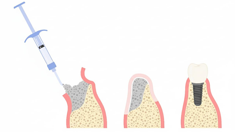 そのような場合でも、骨造成手術を併用することで、インプラント治療が可能となる場合があります。骨造成とは、不足している骨を補い、インプラントを安定して支えられる環境を整える治療です。